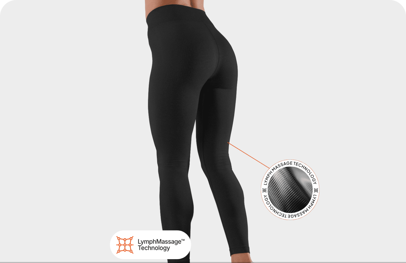 Unsere Hosen nutzen die innovative NanoMassage™-Technologie. Die Noppen im Inneren der Hose arbeiten bei jeder Bewegung, um die Gewebeschichten sanft zu verschieben. Dieser Prozess fördert einen Sogeffekt, der die Lymphdrainage im gesamten Körper stimuliert und so das Wohlbefinden steigert.